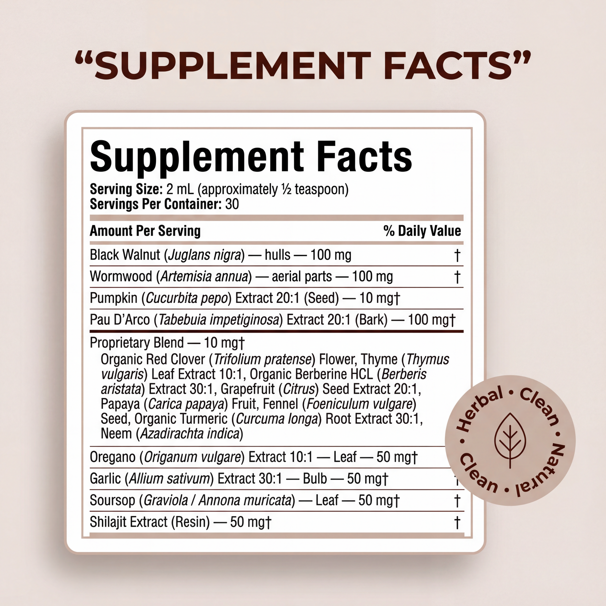 - Organic herbal extracts (like Wormwood + Pau D'Arco + Oregano Oil) help loosen trapped buildup