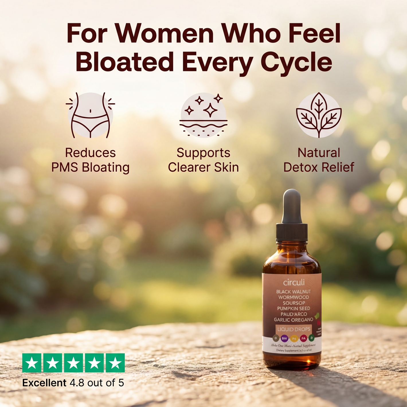 By supporting a calmer, less overloaded gut, your body reacts less intensely to hormonal shifts… which means less puffiness, less pressure, and a lighter-feeling cycle.
